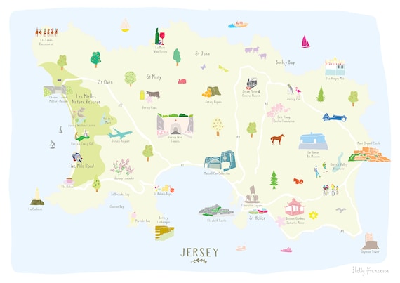 Jersey Print Map Poster Jersey Channel Islands Map Coastal Etsy